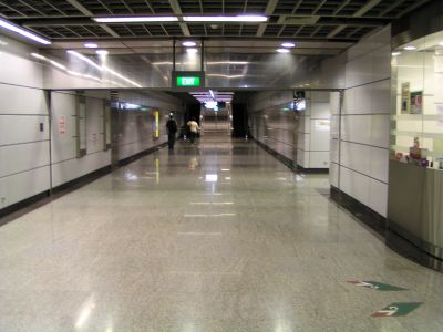 Head straight down and up the escalators.